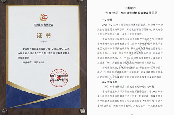 近日,中国电力《“平台+协同”供应链创新破解煤电发展困局》ESG实践案例,成功入选中国上市公司协会“2025年上市公司可持续发展最佳实践案例”。